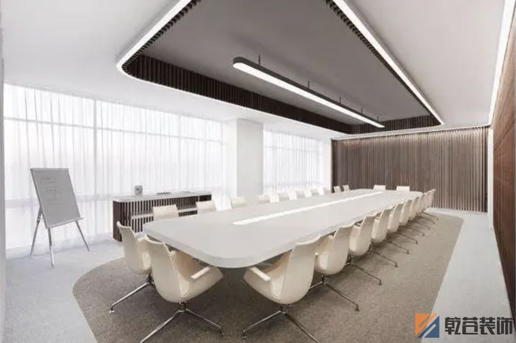 办公室装修三 会议室。常见会议室桌子的形状有长方形、圆形、U型等。对于大企业来说,会议室一般使用长方形最为稳妥。它不但可以容纳更多的员工,还能考虑到其他公司组团来参观。但要注意在开会时,由于员工们较多,很难保持有良好的空气。那就需要我们在设计会议室时,充分考虑它的环境设计。
