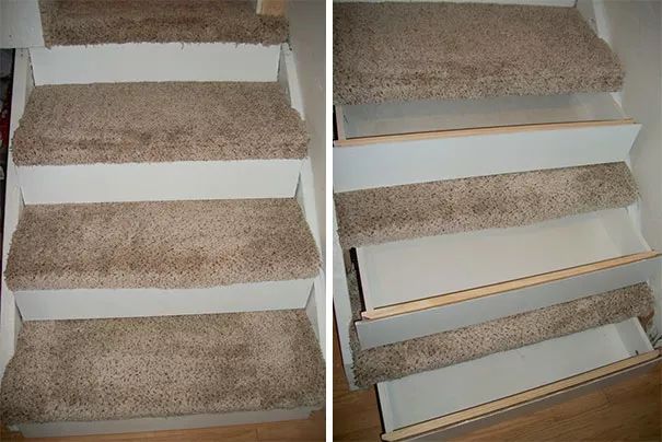 ▼毛毯下的楼梯都是一个个抽屉