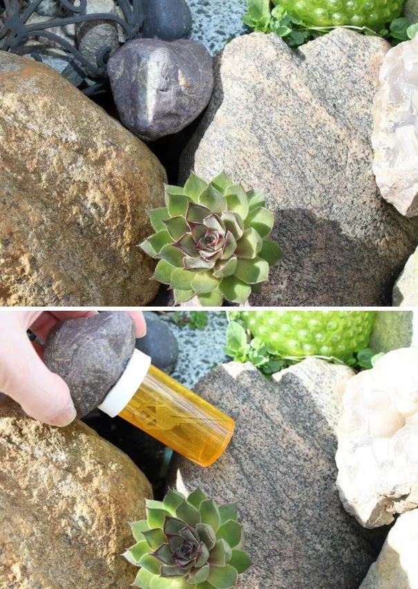 ▼把钥匙藏在了门口的石头里,真的是又好记又隐蔽