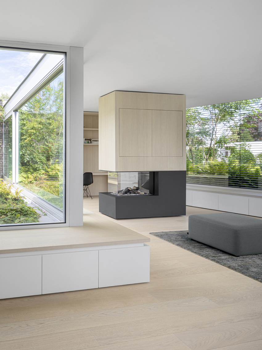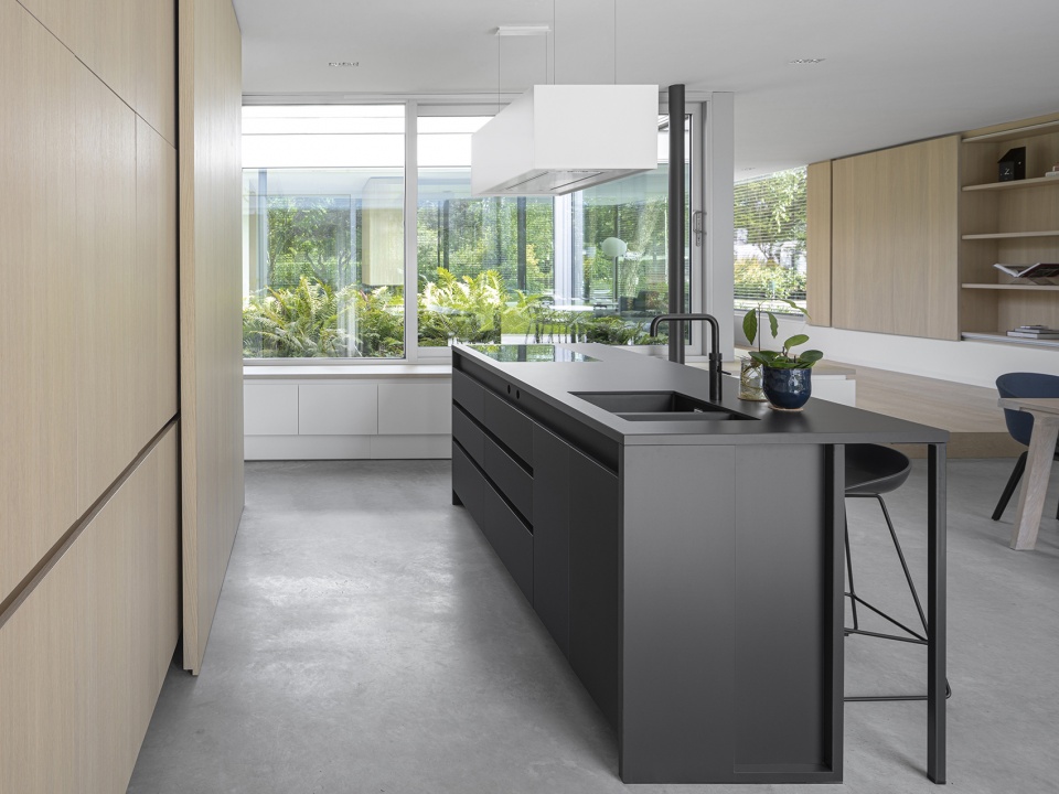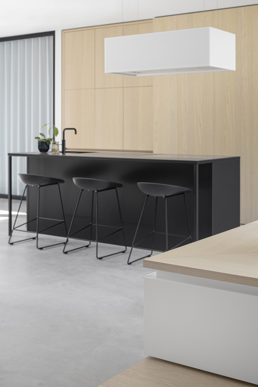 房屋视野开阔、立面通透,而整体布局巧妙,大量绿植给人一种私密感。其品质体现在内外空间和谐相接的细节上,室内具有大量木制表面,使不同区域相连,其中,橱柜、衣橱、墙壁、推拉门和床统一使用相同的木材和饰面。橱柜、厨房设施和家具根据建筑布局定制。建筑与室内设计浑然一体。