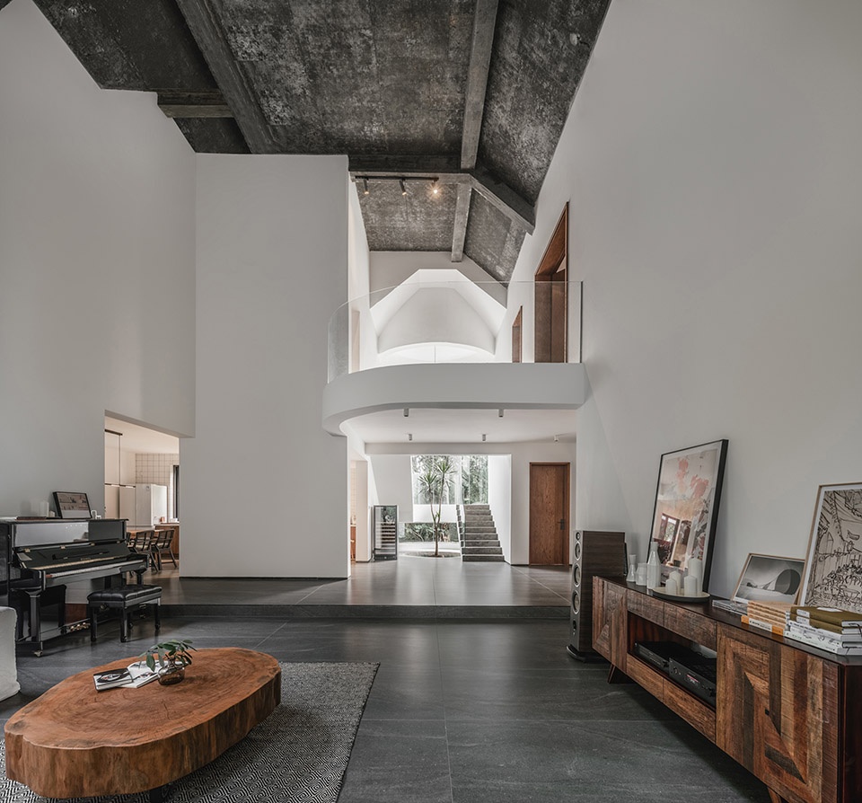 有当代空间中体块与体块之间的几何形体之美,也有属于古老感官经验中的大开大合的静穆与轻盈。在这里,墙体一再退避舍让,空间一再连续扩容,放弃一切装饰、一切色彩、一切符号与形式,让空间回归通透与自由,让生活回归生活本身。这便是空间极致的力量。