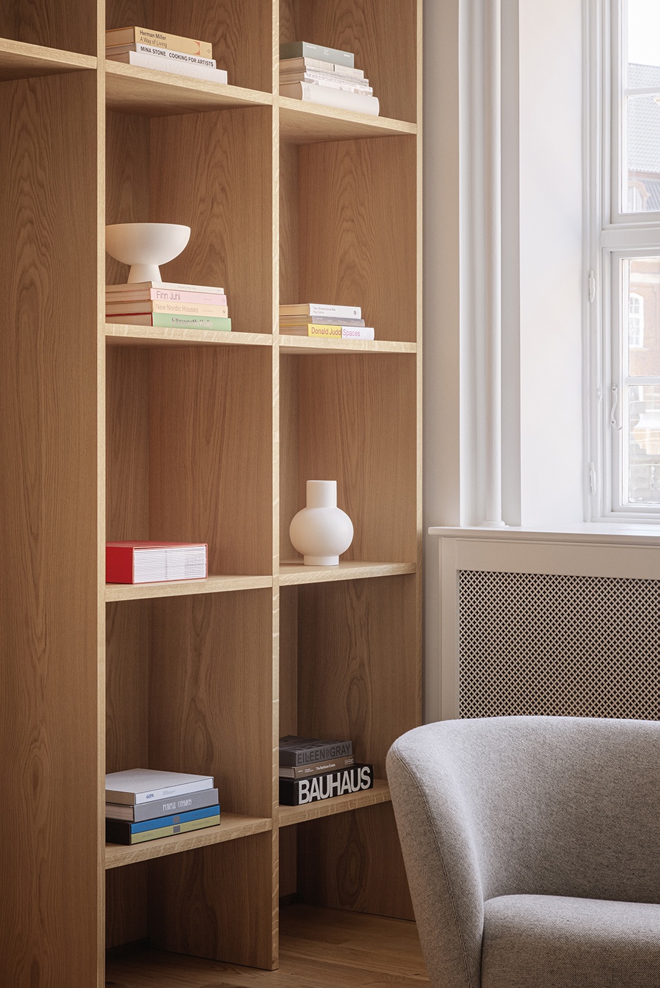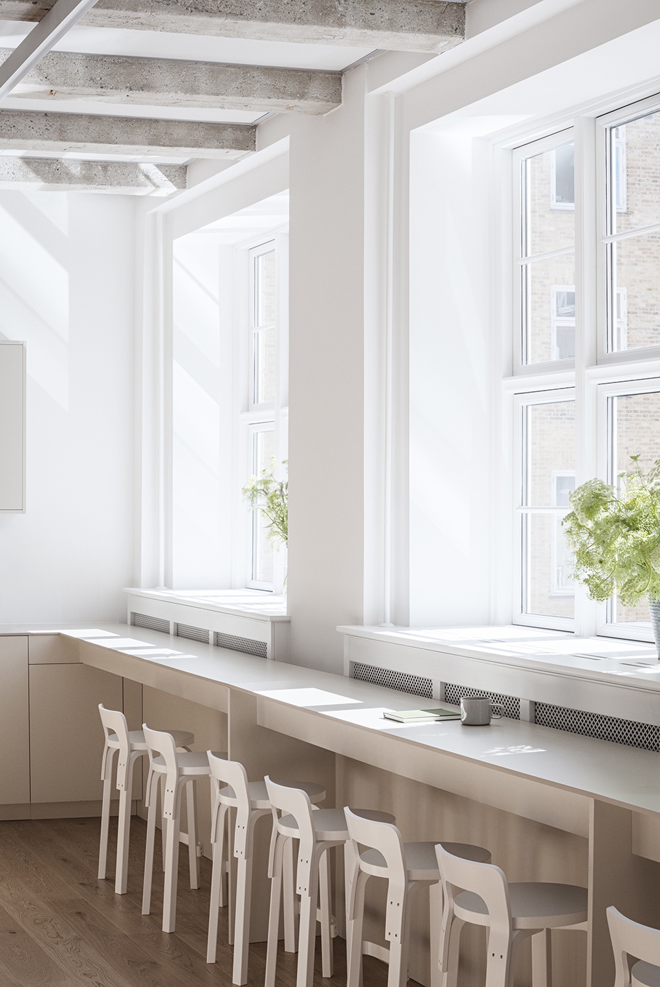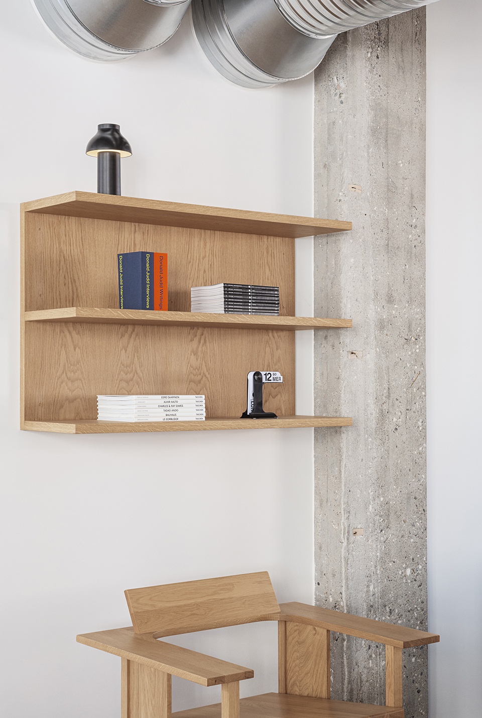 所有固定家具均由Aspekt Office设计,包括连续的橡木壁龛式书架,提供隐秘和沉思空间的隔音电话间,以及六米长的定制桌子,是员工在办公室厨房聚会的中心。该项目还以史上第一个Reform和Aspekt Office合作制造的厨房为特色。Aspekt Office为丹麦厨房制造商Reform设计的新厨房将于今年下半年上市,Reform以现代厨房案例、与Mueller Van Severen和Cecilie Manz等国际知名设计师合作而闻名。