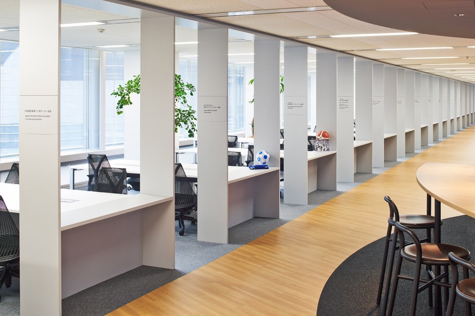 TORAFU ARCHITECTS为2020年东京残奥会设计的基金办公室,该办公室位于Junzo YOSHIMURA设计的东京赤坂日本基金会大厦中,这里将为25个体育联盟提供支持,TORAFU建筑师的任务是提供一个促进体育和日本残奥会运动员发展的空间。
